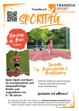 An unseren Sportveranstaltungen nehmen Transplantierte und Dialysepatienten teil - von 4 bis 80+ Jahren, von Einsteiger bis Könner.