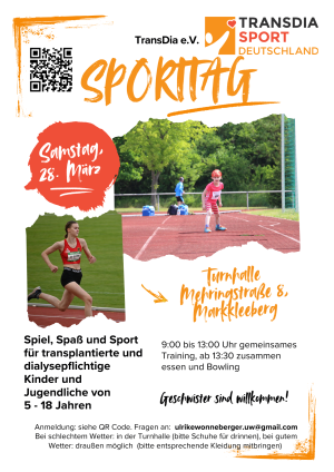 Du bist transplantiert (Organe bzw. Stammzellen) oder dialysepflichtig und magst mit anderen Kindern und Jugendlichen, die in der gleichen Situation sind, gemeinsam Sport treiben und jede Menge Spaß haben?